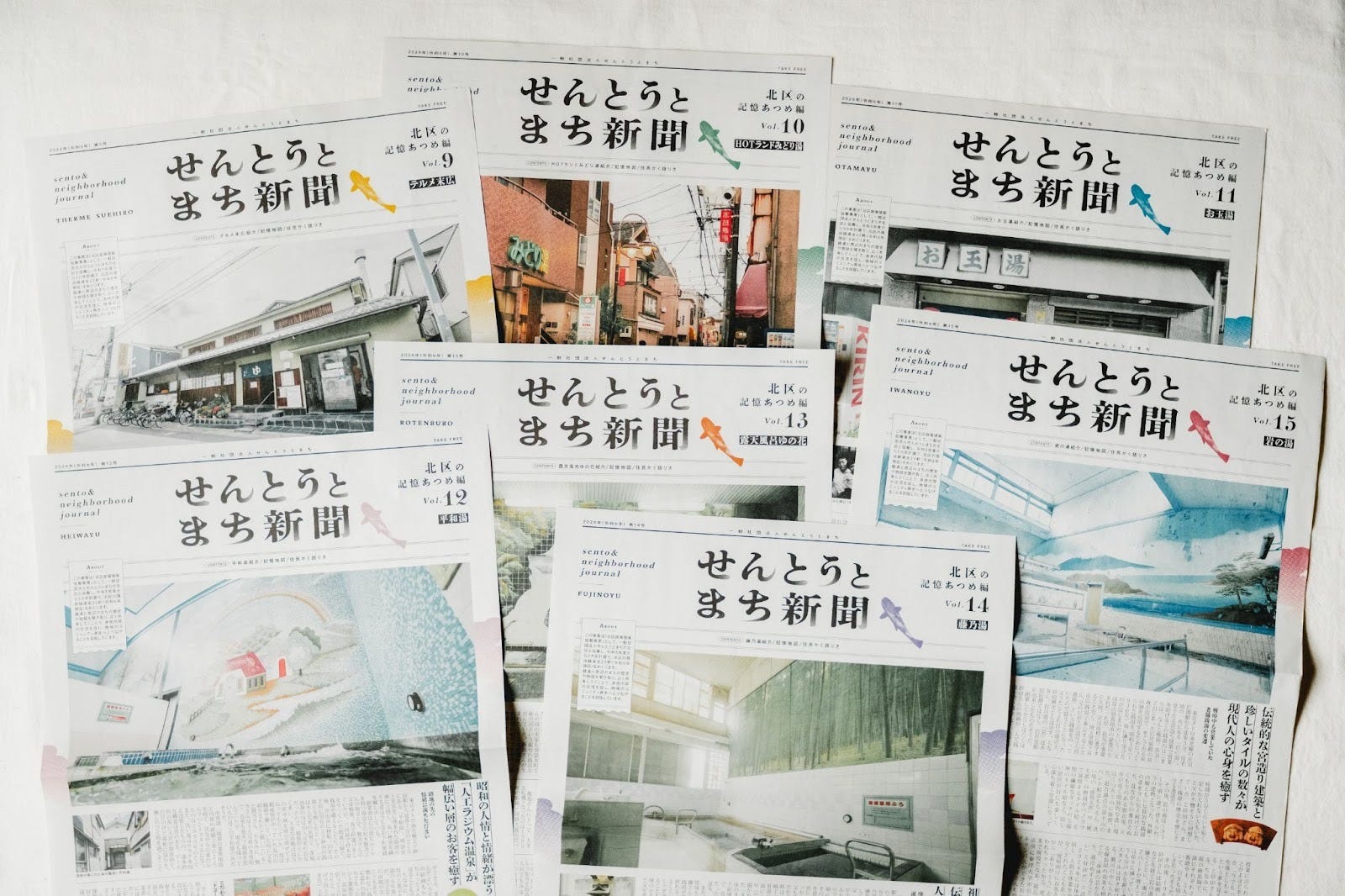 各銭湯で聞き取った貴重な地域の物語や銭湯の歴史などをまとめた「せんとうとまち新聞」の今年度7軒分を目下編集中です。2月から3月にかけて北区内の銭湯や駅スタンド、北区役所や北区観光協会などでお手にとっていただける予定です。